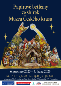 Vánoční výstava v Muzeu Hořovicka představuje různé typy papírových betlémů: skládací, vystřihovací ve formě archu nebo vystříhané a lepené na překližce s dřevěnými špalíčky, rozkládací… Samostatnou kapitolu tvoří archy s reklamními betlémy, k vidění jsou tisky pocházející z obchodu s koloniálním zbožím v Hostomicích čp. 229.