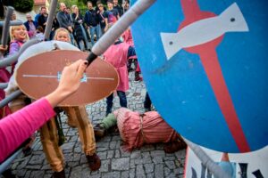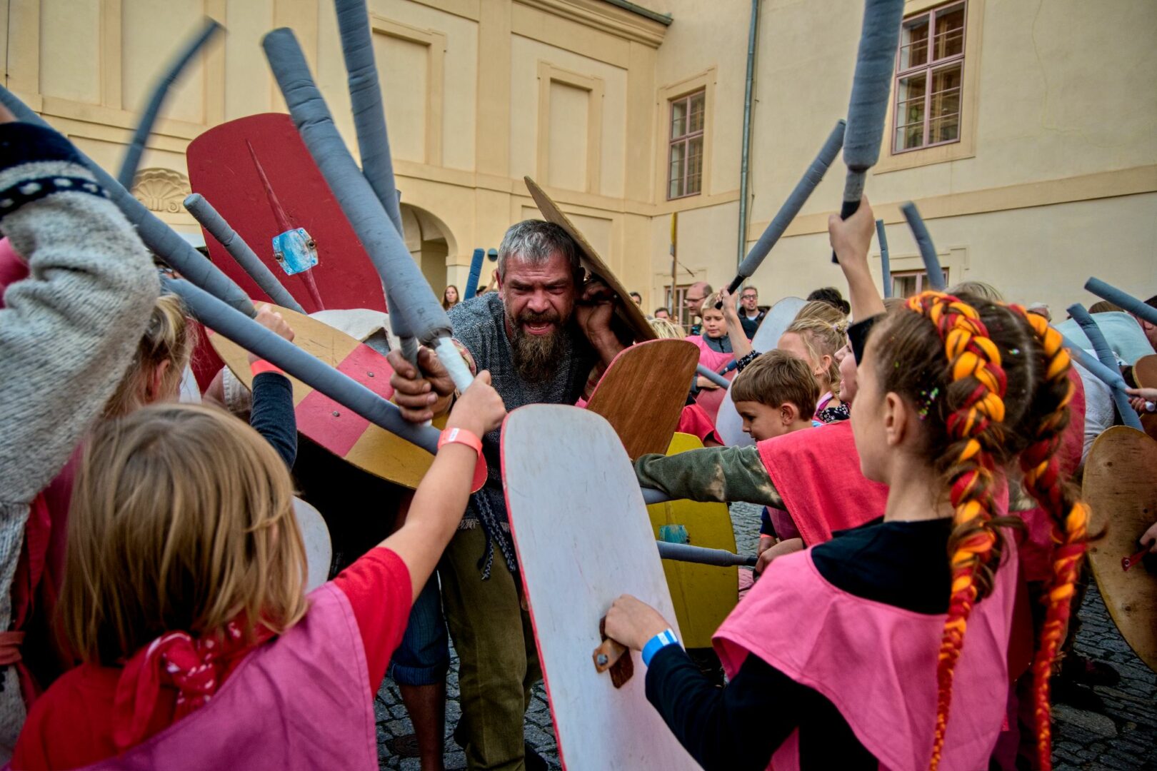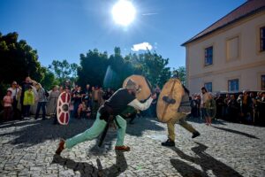 Celý den se budete setkávat s Vousovým kmenem, nebudou chybět ukázky keltských bojů a tradiční dětská bitva, kdy se děti převlečené za Římany utkají s Kelty.